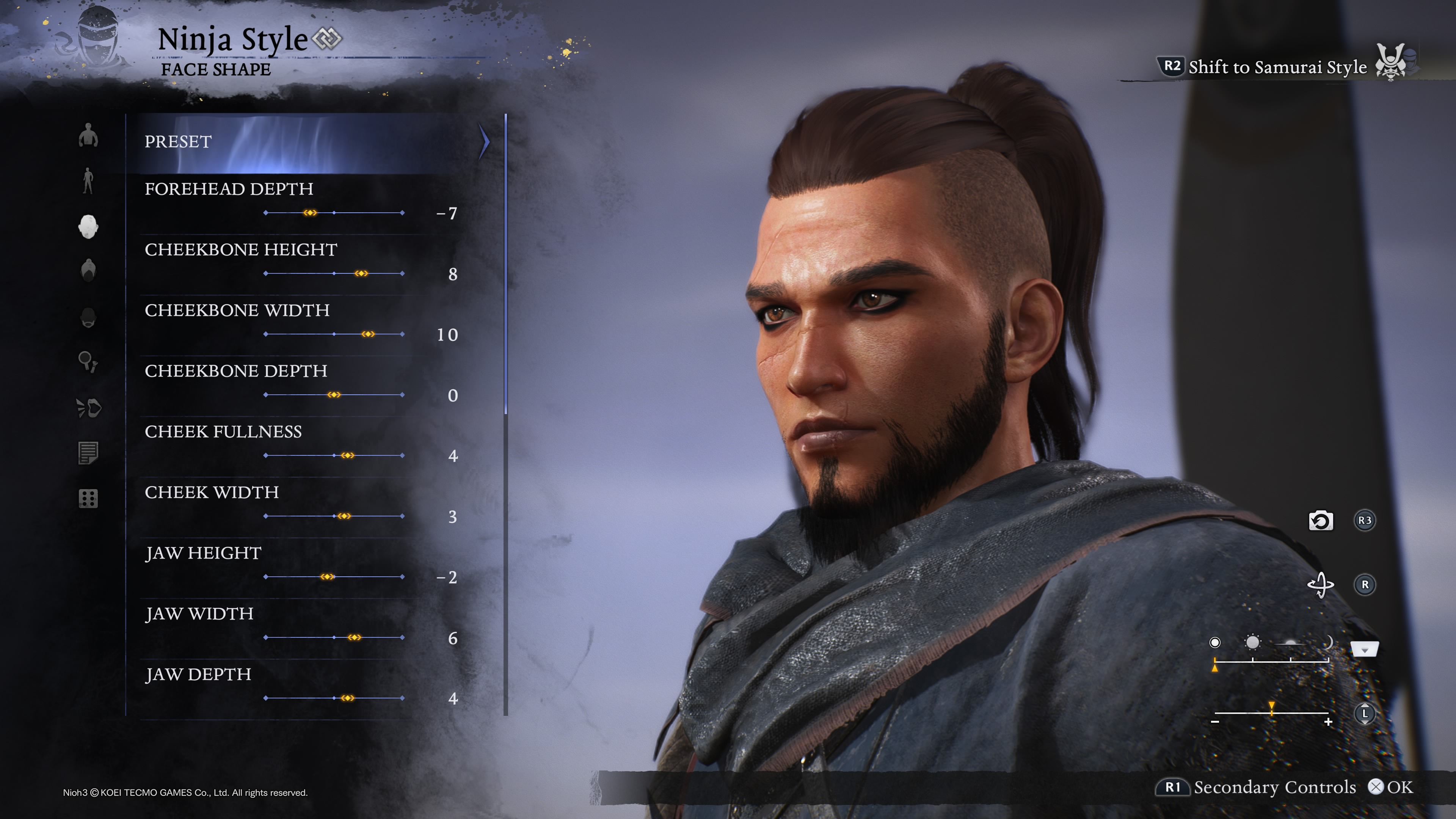 Krátce nato zavítáš do editoru postav, který rozhodně potěší. Možností je víc než dost a můžeš si tak vytvořit vlastního borce přesně podle svých představ. Ba co víc, hra ti dovolí zvolit rovnou dva vzhledy – jeden pro samuraje a druhý pro ninju. A právě o tom Nioh 3 v jádru je. Propojení dvou stylů se pak line celou hrou jako hlavní motiv a postupně se promítá nejen do soubojů, ale i do celkového pojetí hratelnosti.